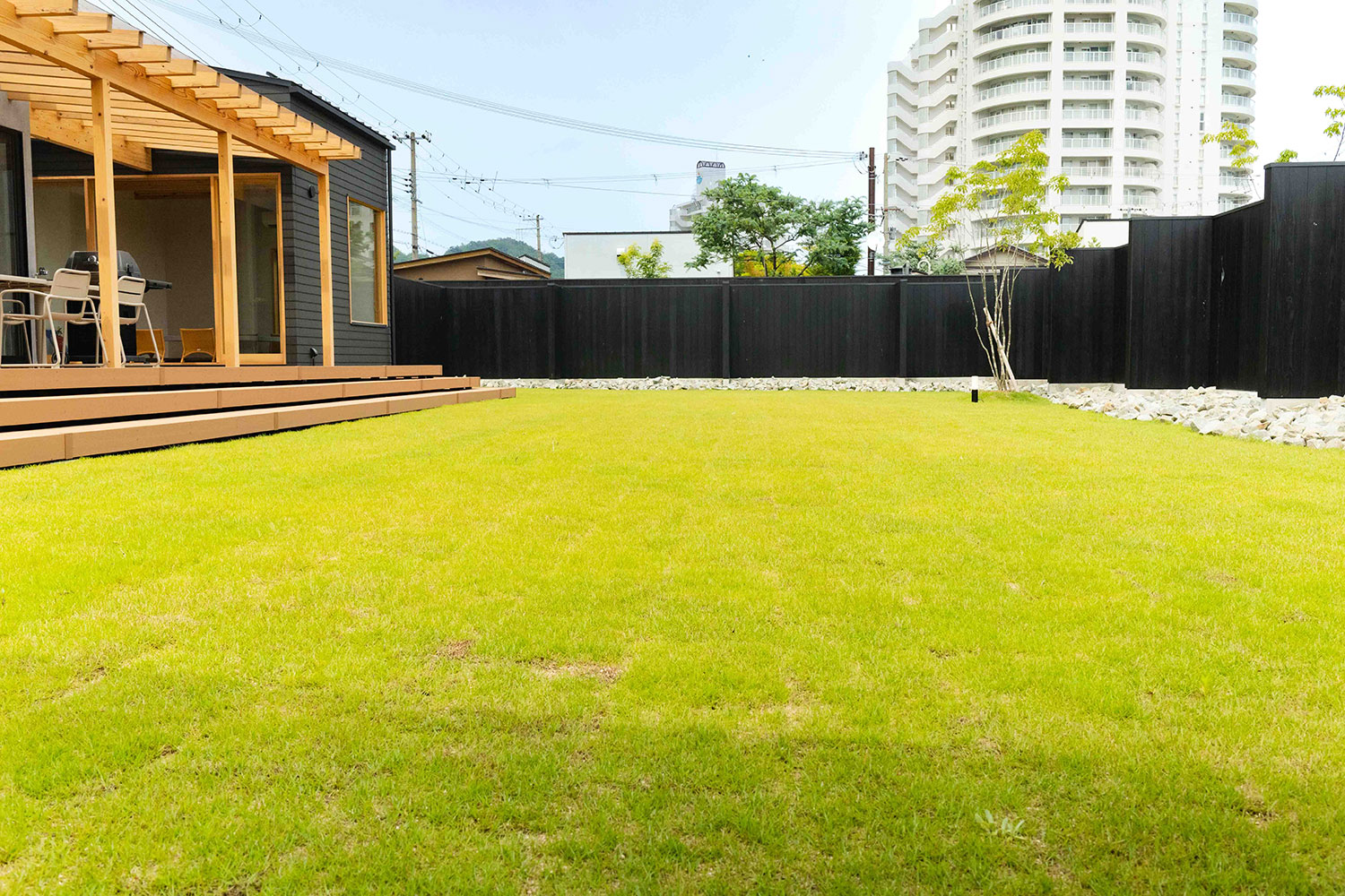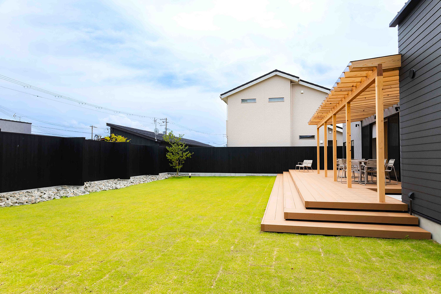 全棟にデッキテラスを含め約280㎡のプライベートドッグランを完備。
