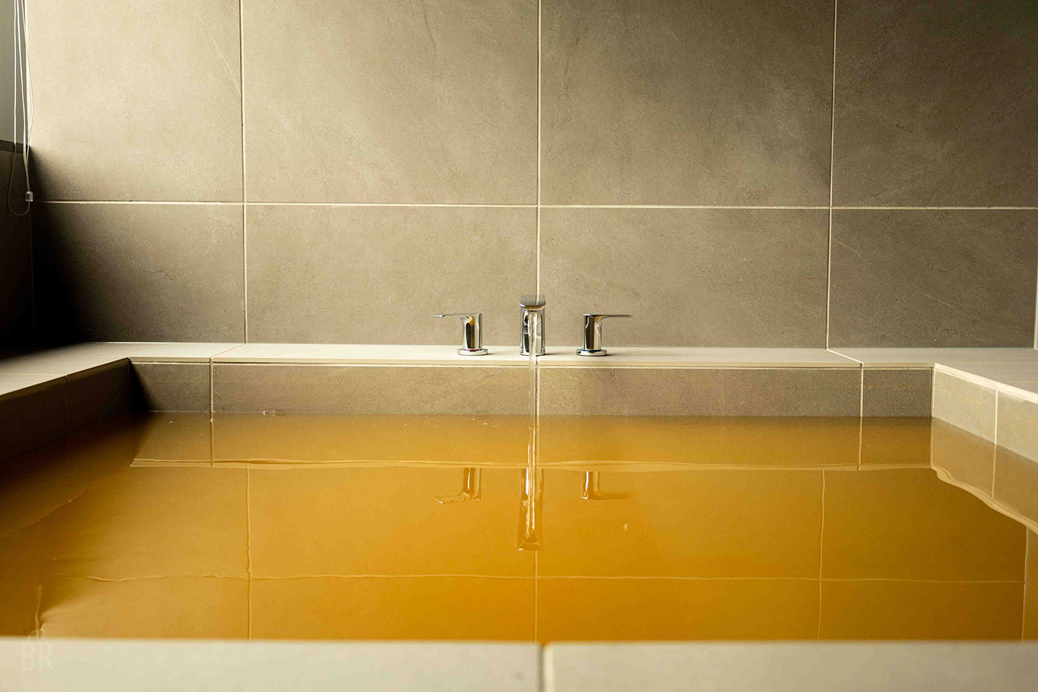 全棟の客室には、自家源泉から引いた天然温泉 「金温泉」 を24時間いつでもご利用いただけます。