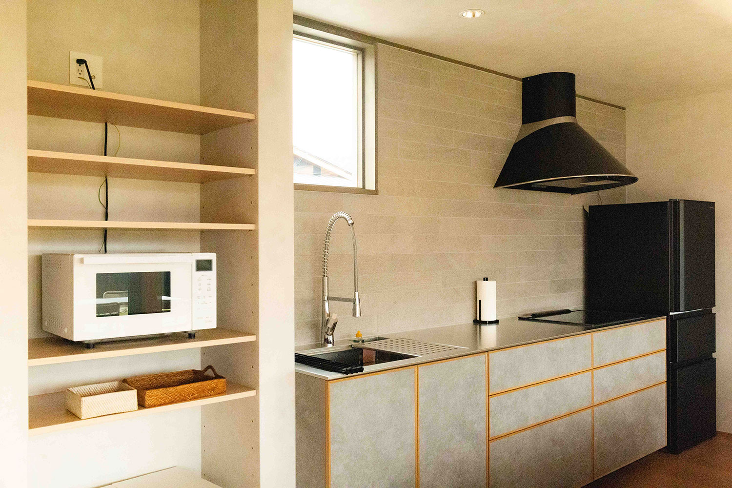 IHコンロ付きのキッチンを完備。調理器具や食器類も揃えているため、食材を持ち込んで自由にお料理いただけます。