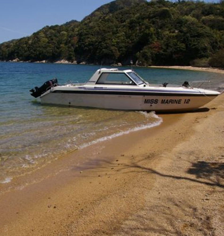 「マリントピアマリーナ」から、船でのみアクセスできる黒崎半島の無人の砂浜まで送迎いたします。